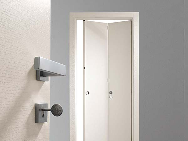 • Porta a libro: formate da due o tre sezioni che si ripiegano su sé stesse adattandosi perfettamente a situazioni in cui non è possibile installare una porta scorrevole ma si vuole ugualmente evitare l’ ingombro della porta “aperta”.